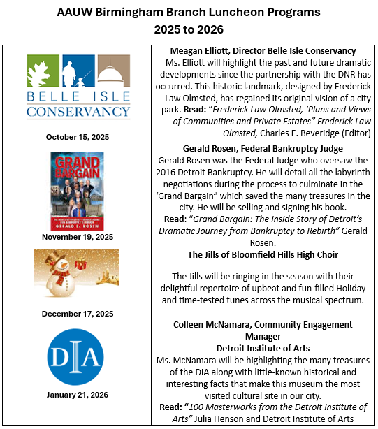 General membership meetings are luncheon meetings scheduled for the third Wednesday of the month at 11:30am. Members are welcome to attend only the program portion of the meeting without attending the luncheon. Check your newsletter for luncheon cost and menu. Typically, the luncheon cost is $34.00.